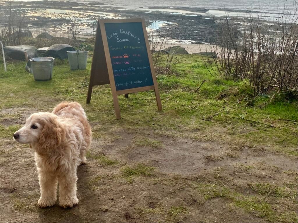 I arrived at the outdoor sauna in Fife, located on a raised bank just steps from the beach at Lower Largo. The setting was beautiful, even the sky began to brighten. A sliver of sunshine broke through, which felt like a small miracle in February.