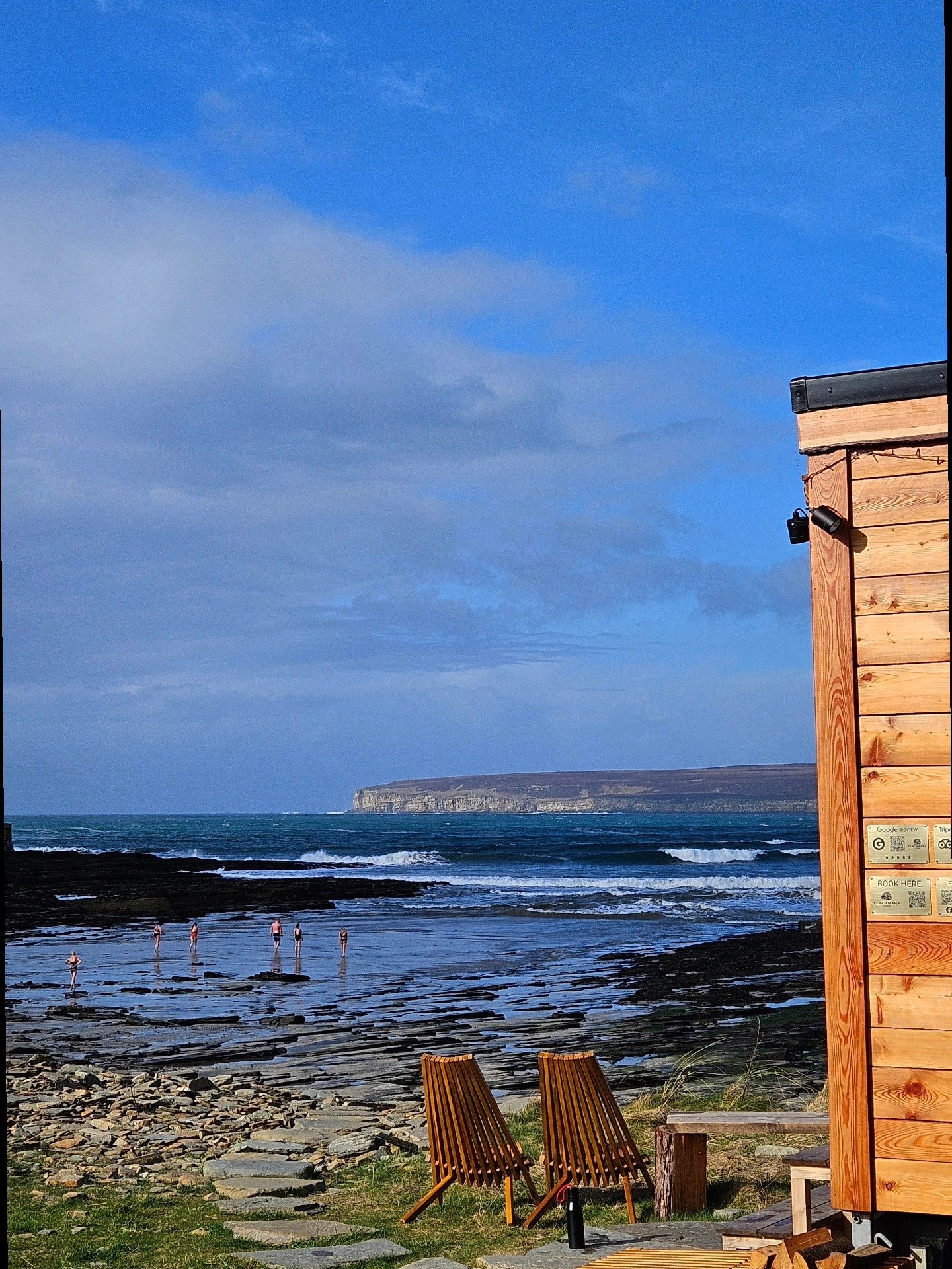 With sessions often based at Castletown Beach and other pop-up locations, the experience centres on simple heat, sea immersion and time spent outdoors. Expect wide coastal views, fresh air and a sauna experience shaped by the landscape around you.