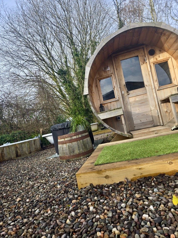 - A wood-fired sauna in a private outdoor setting